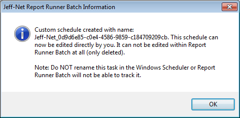 That's it! You have unlimited scheduling options using the CUSTOM setting. As long as you create the ID in the Report Runner Batch Scheduler, any custom schedules you modify can still be tracked and reported on using Report Runner Batch.