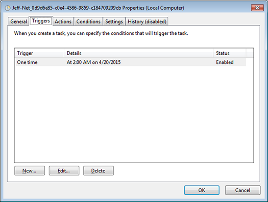 4. Click on "Task Scheduler Library" and double-click on the Jeff-Net schedule you just created (note since it indicates it has "Never" been run in Last Run Time, it is easier to locate).