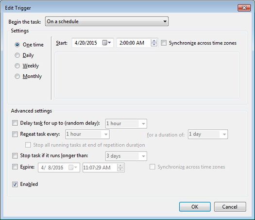 NOTE: This tutorial is based on the Windows 7 and Windows 8 Task Scheduler (which included Windows Server 2008 and 2012). If you are using Windows XP or Server 2003, you can still accomplish this, but the screenshots will look a bit different.